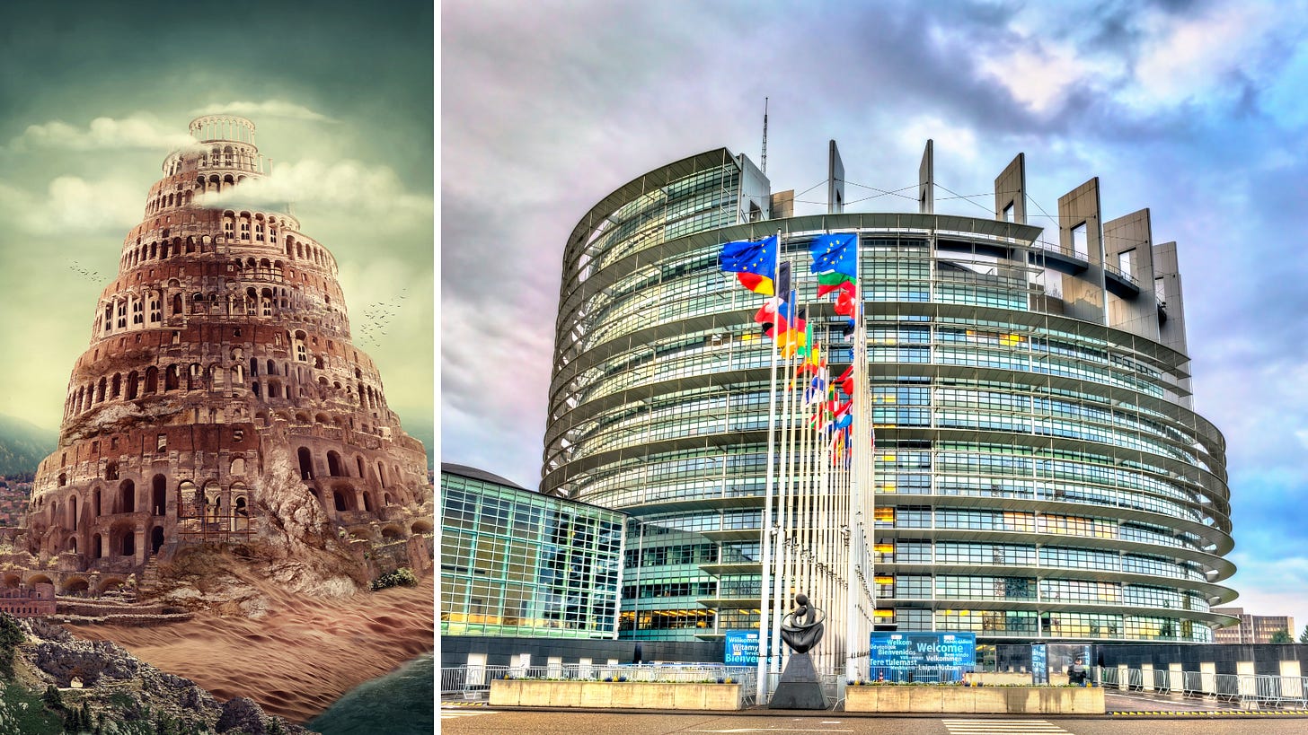 Jag är inte särskilt bevandrad inom ämnet arkitektur, men mycket kan sägas om EU-parlamentets byggnad och hur det ser ut, nämligen att det ser ut som Babels torn. De gör inget för att dölja sina rätta jag. För dem är inget konstigt, för det är så naturligt för dem.